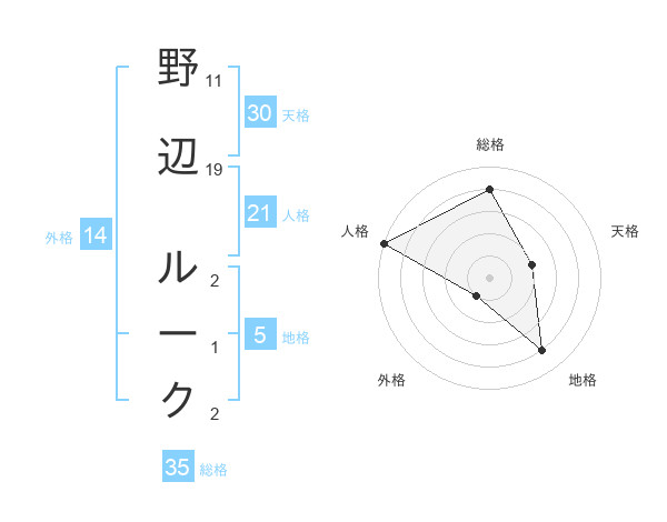 野辺 ルークさんの総格は35画の4点!