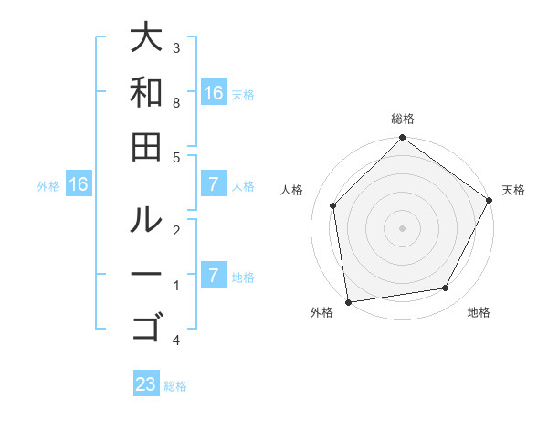 大和田 ルーゴさんの外格は16画の5点!