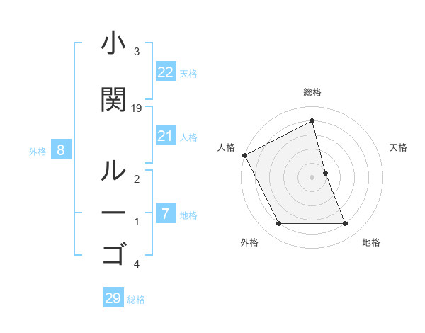小関 ルーゴさんを姓名の画数から五運を鑑定