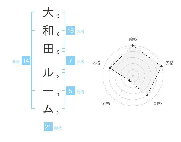 大和田 ルームさんを姓名の画数から五運を鑑定