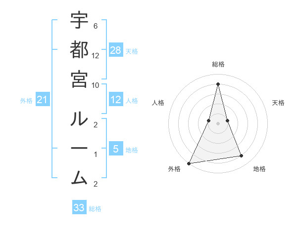 宇都宮 ルームさんの総格は33画の4点!