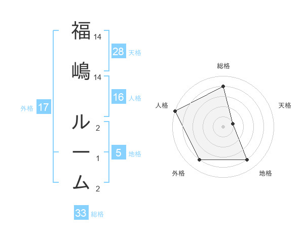 福嶋 ルームさんを姓名の画数から五運を鑑定
