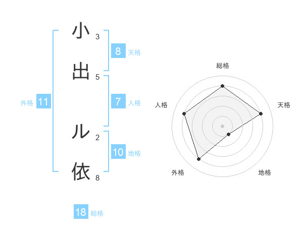 小出 ル依さんの総格は18画の4点!