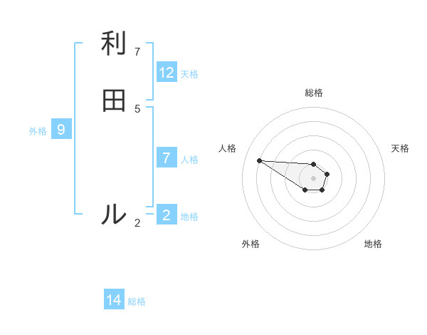 利田 ルさんの総格は14画の1点!