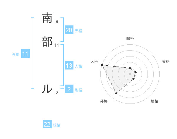 南部 ルさんの総格は22画の1点