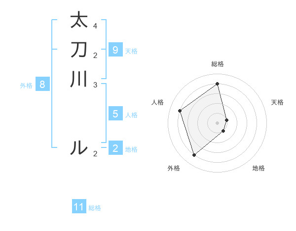 太刀川 ルさんを姓名の画数から五運を鑑定