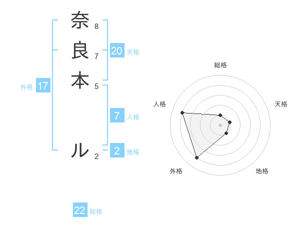 奈良本 ルさんを姓名の画数から五運を鑑定
