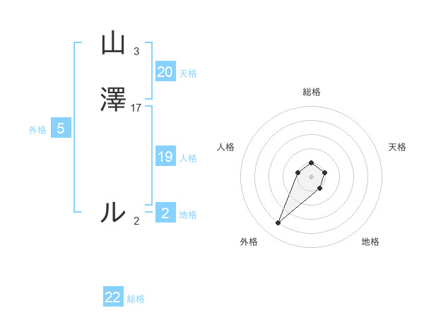 山澤 ルさんの総格は22画の1点!