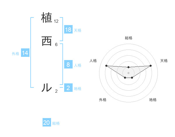 植西 ルさんの総格は20画の1点!