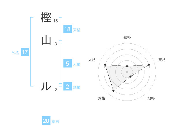 樫山 ルさんの総格は20画の1点!