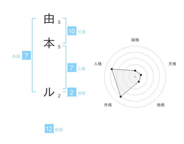由本 ルさんの外格は7画の4点!