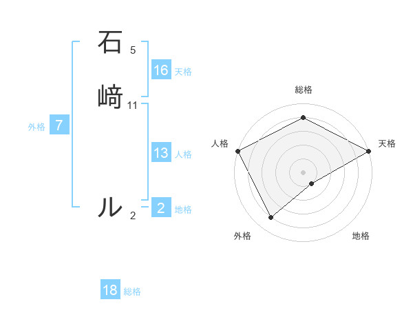 石﨑 ルさんの天格は16画の5点!