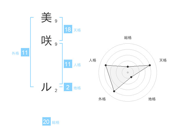 美咲 ルさんの総格は20画の1点!