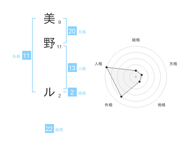 美野 ルさんの総格は22画の1点!