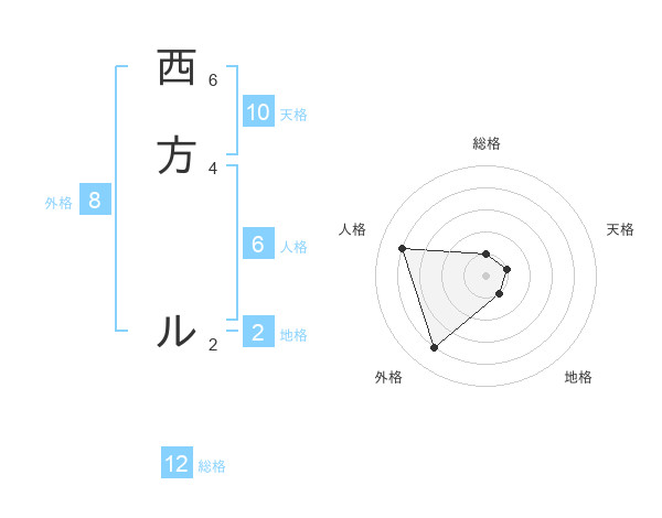 西方 ルさんの総格は12画の1点!