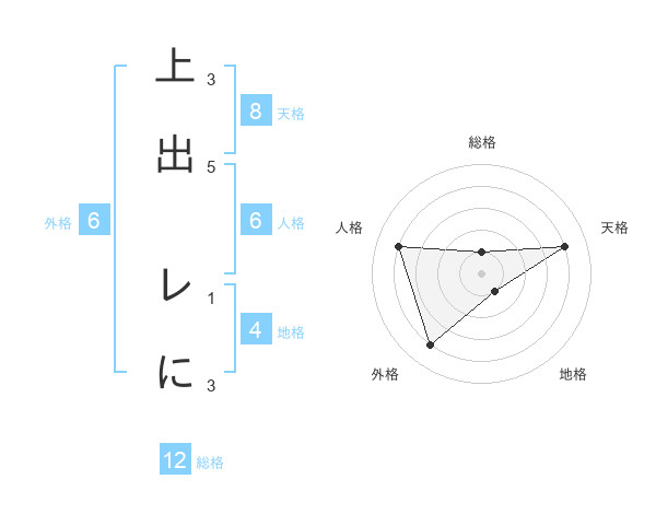上出 レにさんの総格は12画の1点!