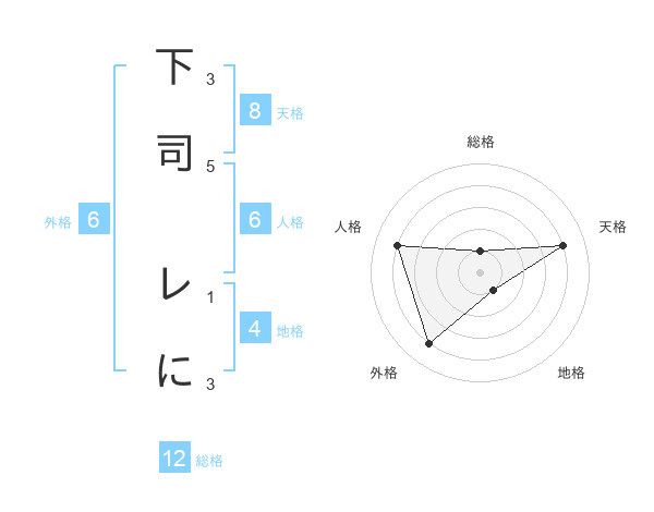 下司 レにさんの総格は12画の1点!