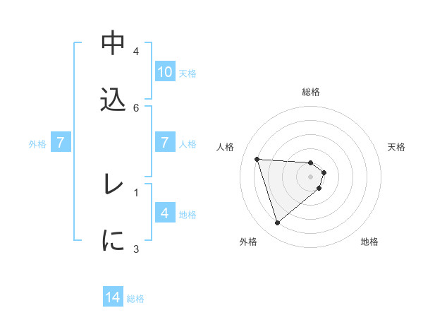 中込 レにさんの外格は7画の4点!