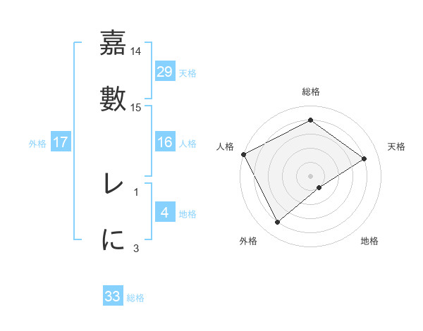 嘉數 レにさんを姓名の画数から五運を鑑定