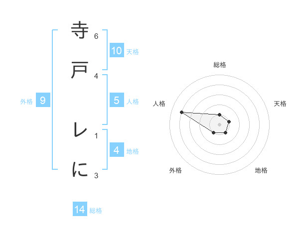 寺戸 レにさんの総格は14画の1点!