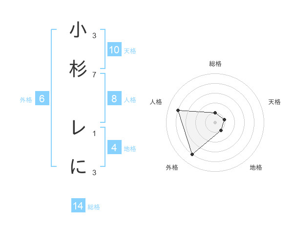 小杉 レにさんの総格は14画の1点!