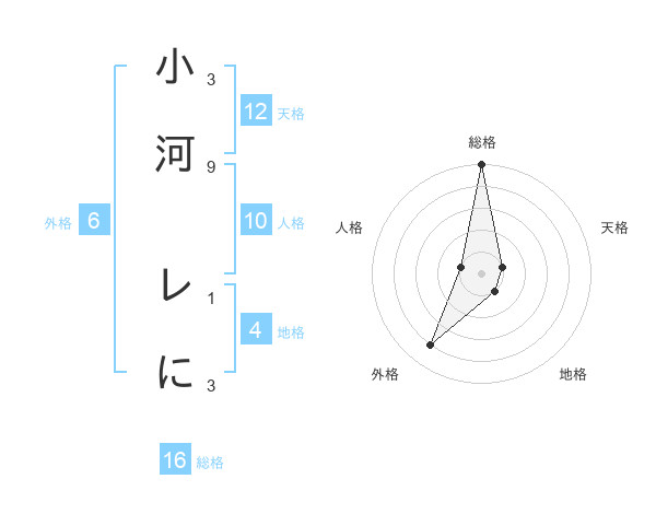 小河 レにさんの総格は16画の5点!
