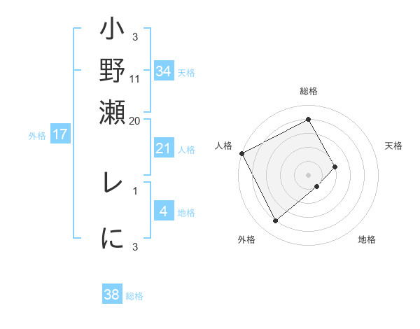 小野瀬 レにさんを姓名の画数から五運を鑑定