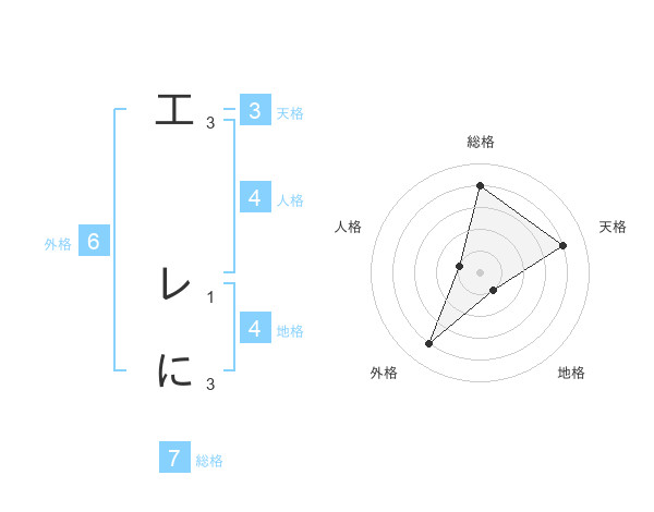 工 レにさんの総格は7画の4点!