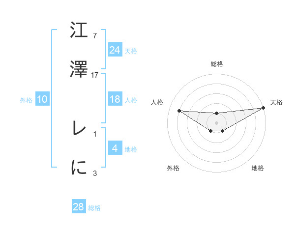 江澤 レにさんの天格は24画の5点!