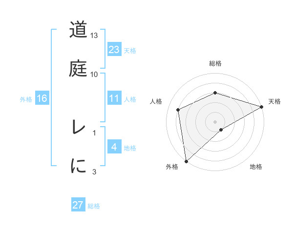 道庭 レにさんの総格は27画の3点!