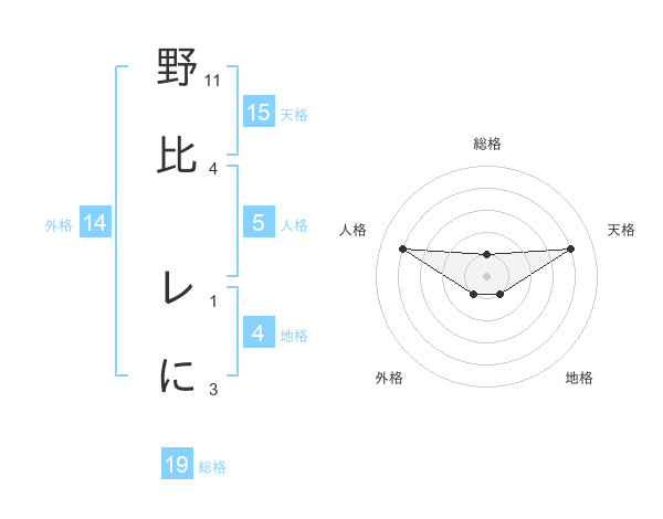 野比 レにさんの天格は15画の4点!