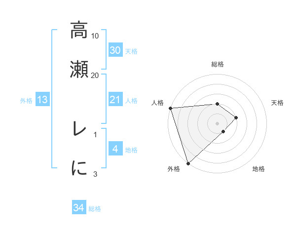 高瀬 レにさんの総格は34画の2点!
