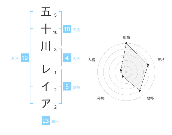 五十川 レイアさんを姓名の画数から五運を鑑定
