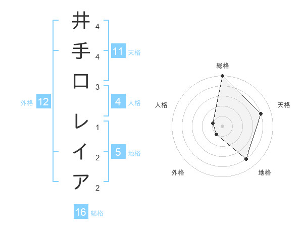 井手口 レイアさんの総格は16画の5点!
