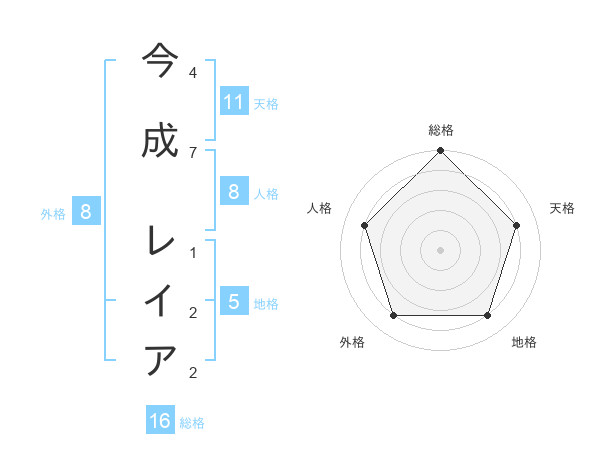 今成 レイアさんの総格は16画の5点!