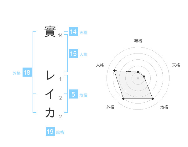 實 レイカさんの天格は14画の1点!
