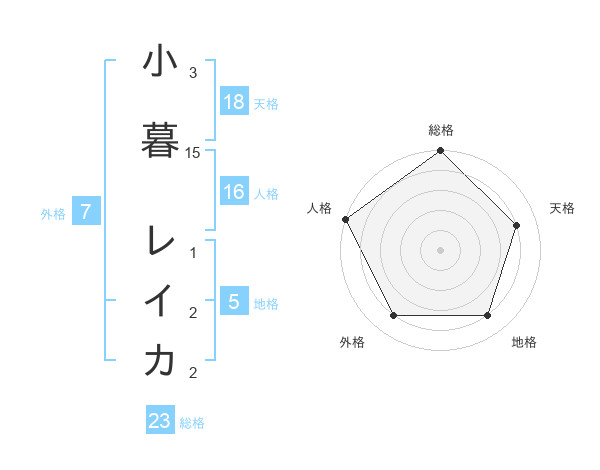 小暮 レイカさんを姓名の画数から五運を鑑定
