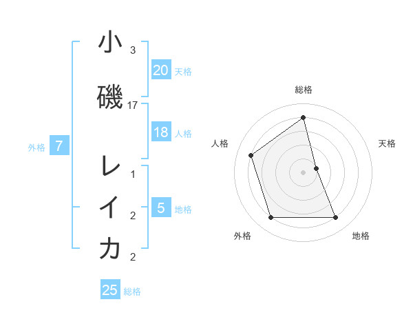 小磯 レイカさんの天格は20画の1点!