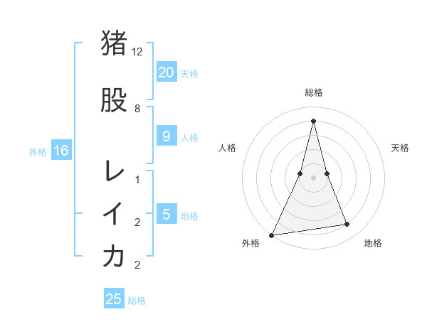 猪股 レイカさんの総格は25画の4点!
