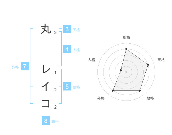 丸 レイコさんの総格は8画の4点