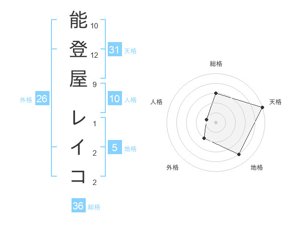 能登屋 レイコさんを姓名の画数から五運を鑑定