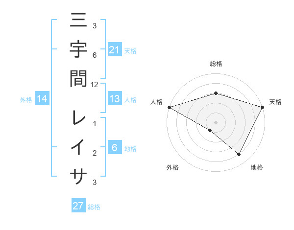 三宇間 レイサさんを姓名の画数から五運を鑑定