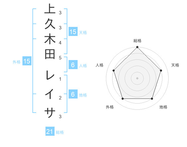 上久木田 レイサさんの総格は21画の5点!