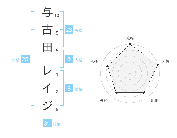 与古田 レイジさんを姓名の画数から五運を鑑定