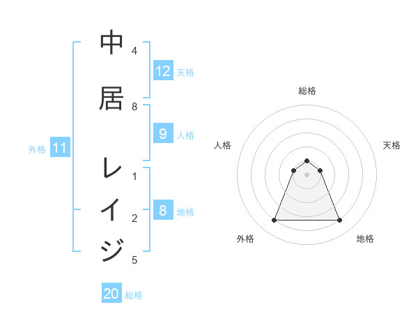 中居 レイジさんの総格は20画の1点!