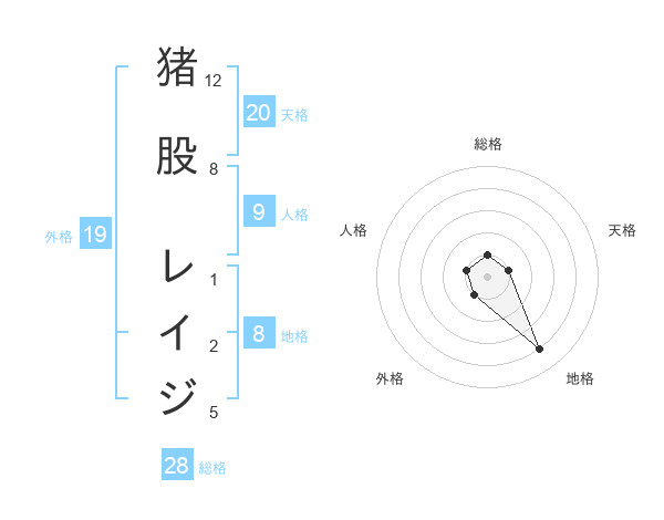猪股 レイジさんを姓名の画数から五運を鑑定