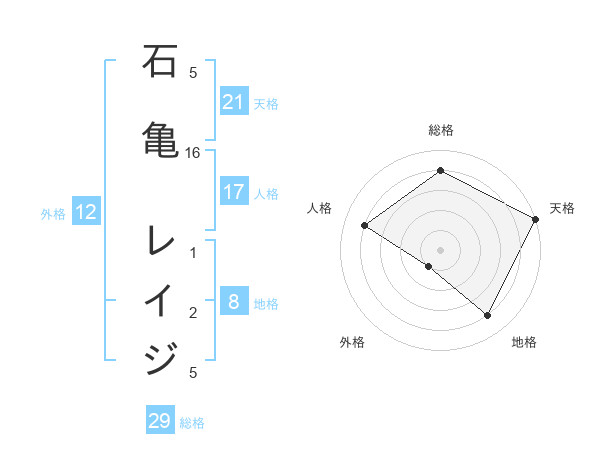 石亀 レイジさんを姓名の画数から五運を鑑定