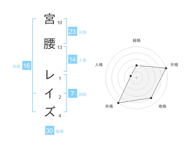 宮腰 レイズさんの総格は30画の2点!