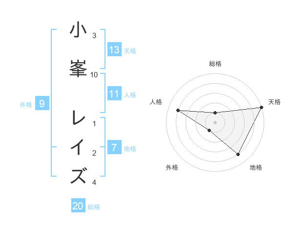 小峯 レイズさんの天格は13画の5点!