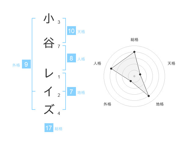 小谷 レイズさんを姓名の画数から五運を鑑定